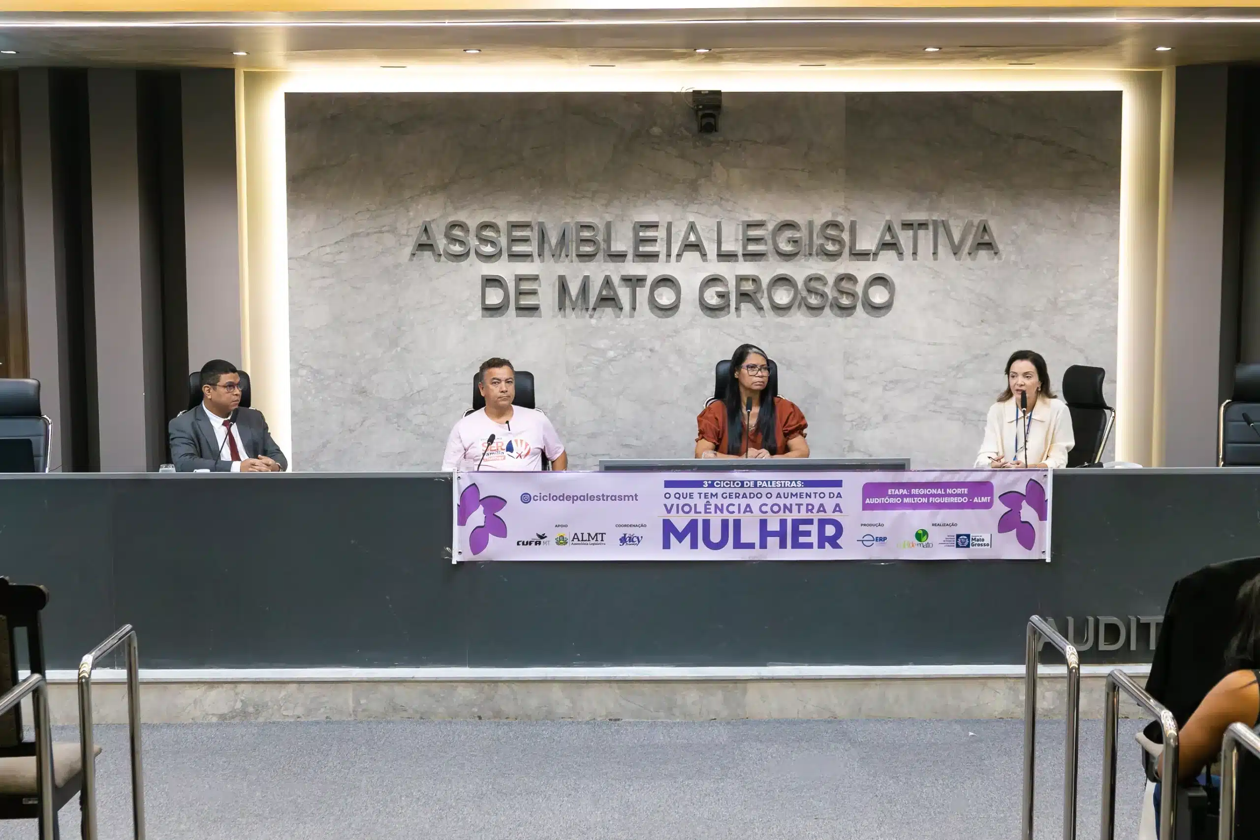 Na segunda-feira (14), em Cuiabá, a Assembleia Legislativa de Mato Grosso (ALMT) recebeu o 3º Ciclo de Palestras voltado ao enfrentamento da violência contra a mulher. Realizado em parceria com a Coordenadoria de Direitos Humanos de Mato Grosso (Cordemato) e a Secretaria de Estado de Assistência Social e Cidadania (Setasc), o evento reuniu especialistas, parlamentares e representantes do poder público para diagnosticar causas e apontar ações de proteção no estado.