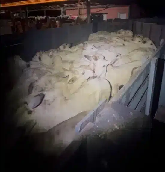 Durante a vistoria do veículo, os policiais constataram que um dos bovinos não resistiu às condições precárias de transporte e morreu. Segundo a legislação brasileira, maus-tratos a animais configuram crime ambiental, o que poderá gerar mais uma denúncia contra os envolvidos.