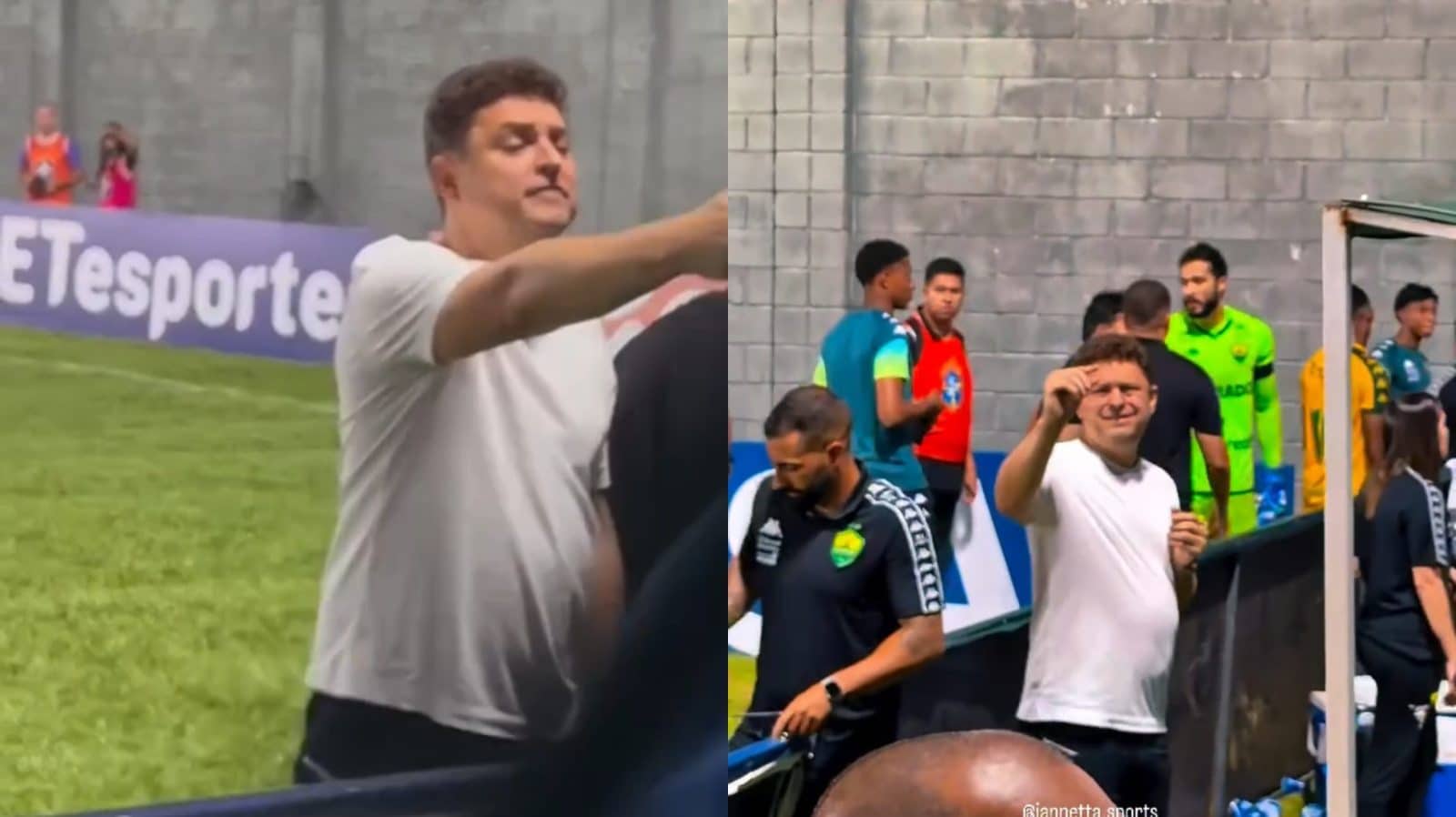 O confronto verbal começou pouco depois do apito final, quando Dresch foi direcionado por xingamentos por parte de alguns torcedores. Em resposta, o dirigente rebateu aplicando o termo “vagabundo” contra um dos manifestantes no gramado.