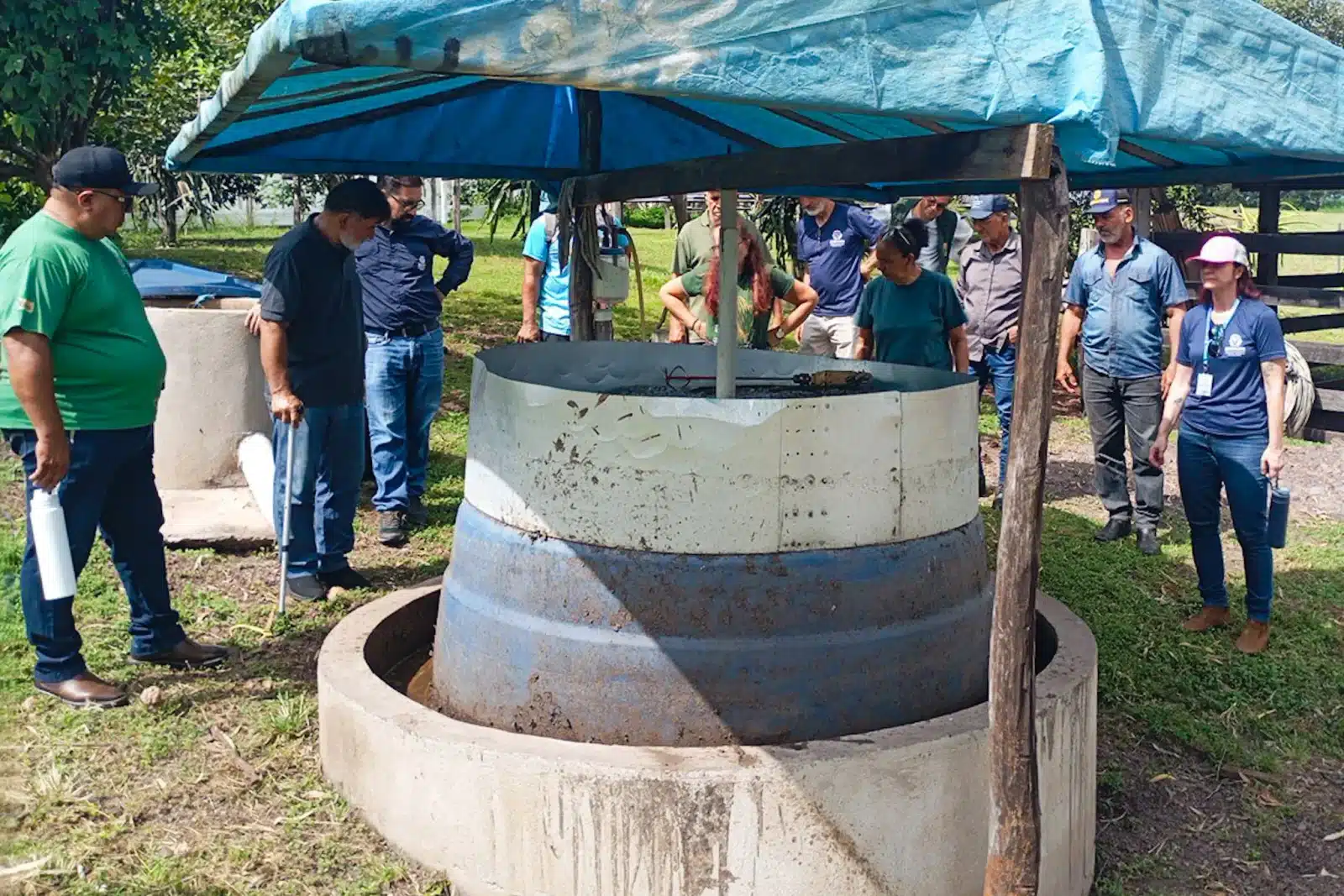 Durante a visita, os técnicos acompanharam todas as etapas de operação do biodigestor instalado na propriedade de Souza. Eles observaram desde o manejo dos dejetos até a captação e o armazenamento do biogás.